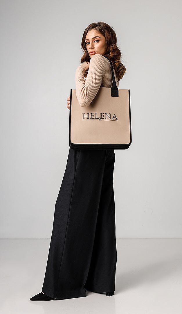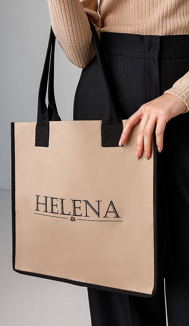 MUST HAVE современных девушек — это удобная сумка-шоппер! Эксклюзивно теперь и в коллекции HELENA – этот стильный и практичный аксессуар с брендовым логотипом. Брендовая сумка-шоппер изготовлена из плотного двухслойного и хорошо держащего форму материала. В сумке-шоппер мы использовали самые актуальные цвета, чтобы этот аксессуар легко сочетался с любыми вещами из Вашего гардероба. Акцентная деталь сумки-шоппера — это брендовая надпись HELENA.