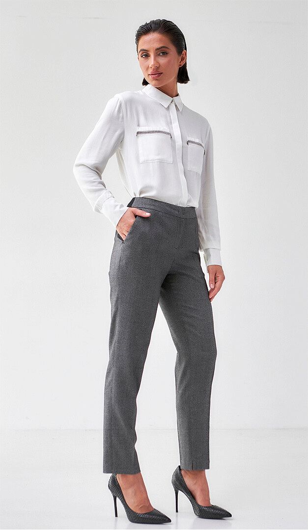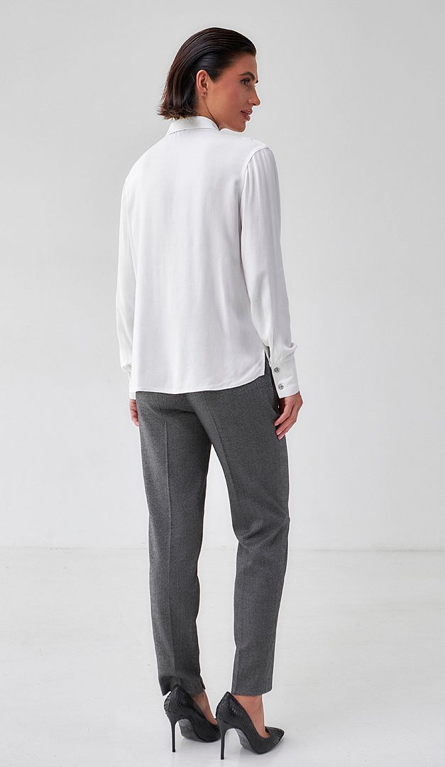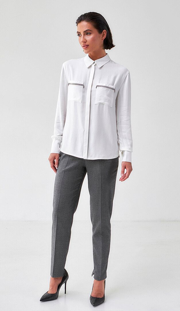 Базовый must have для гардероба каждой девушки — это белая рубашка с карманами! Именно с этой белой рубашкой вы сможете с лёгкостью создавать трендовые образы, комбинируя с любимыми джинсами и с классической юбкой. Носить её — одно удовольствие, ведь изделие выполнено 100% вискозы! Белая рубашка имеет прямой свободный крой. Вырез горловины оформлен аккуратным отложным воротником на стойке. Лаконичный дизайн рубашки стильно дополнен функциональными накладными карманами с оригинальным декором.