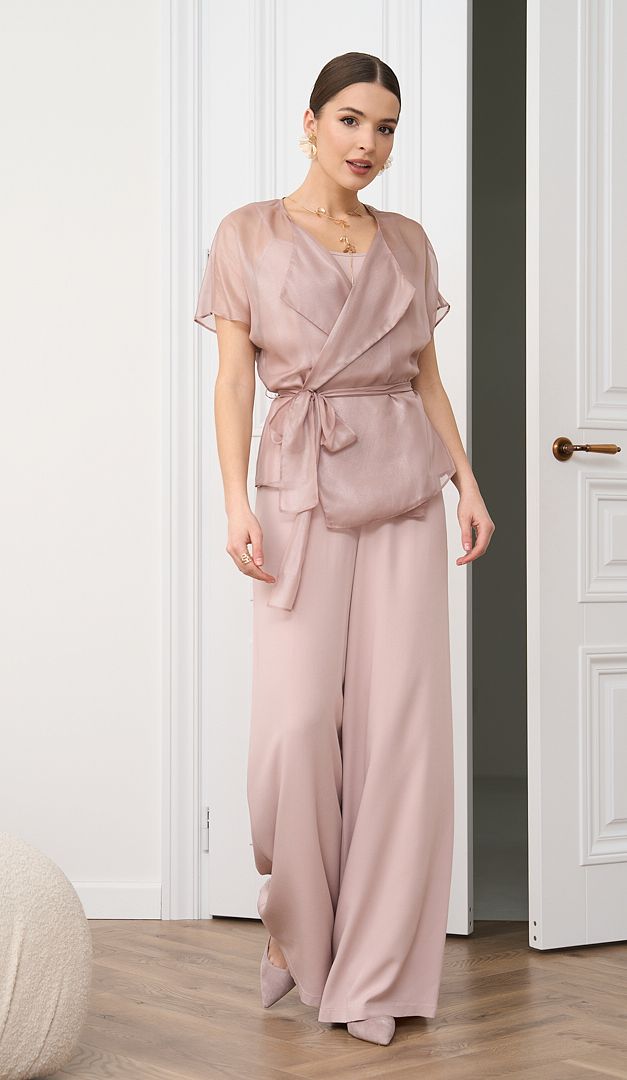 Рекомендуем комбинировать блузку с брюками палаццо пудровыми (арт.2859) и топом на тонких пудровых бретелях (арт.2860).