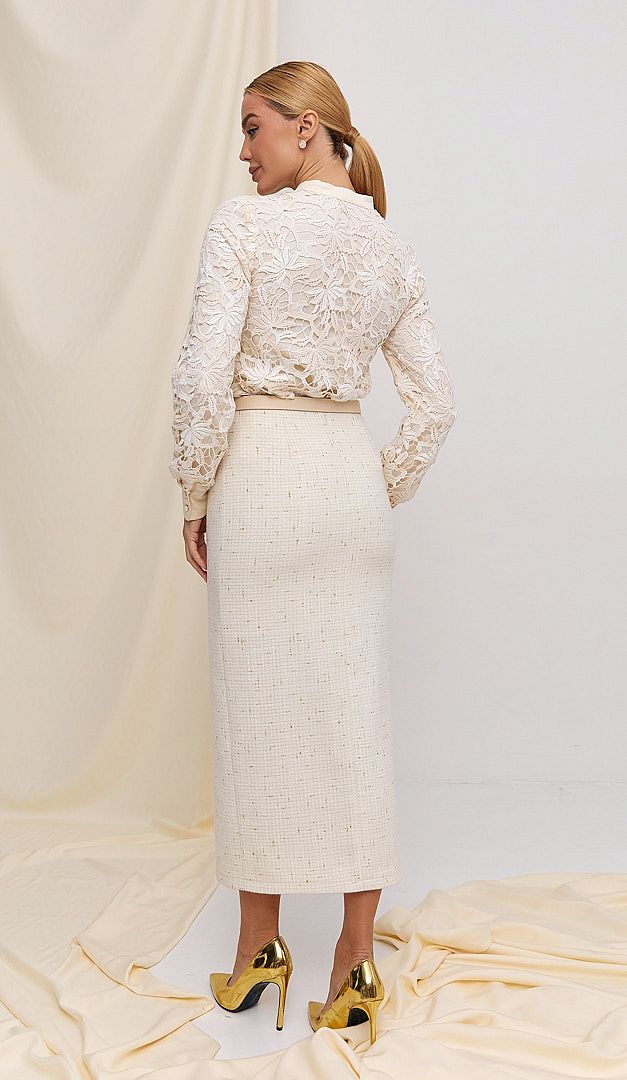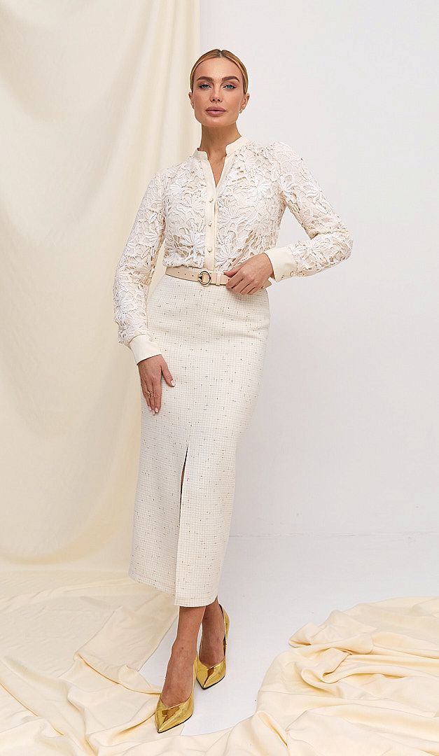 На фото создан образ с юбкой из шерсти молочной (арт.2804).