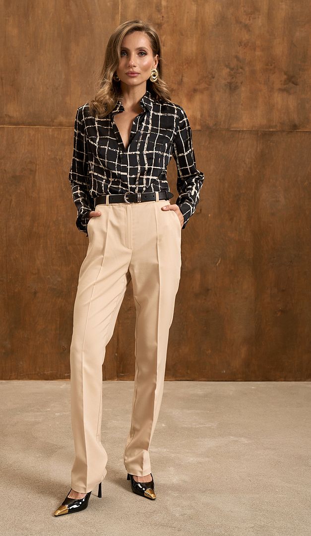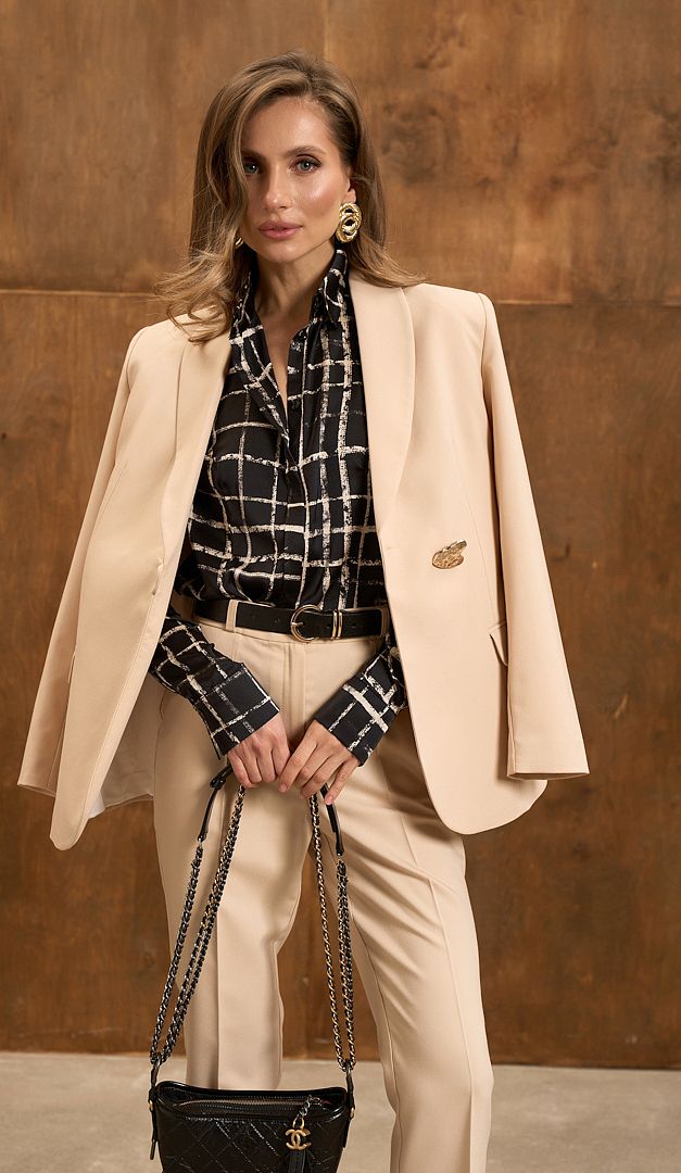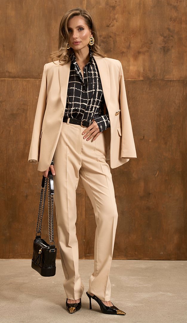 На фото створений образ з жакетом вершковим (арт.2835) і штанами вершковими (арт.2834).