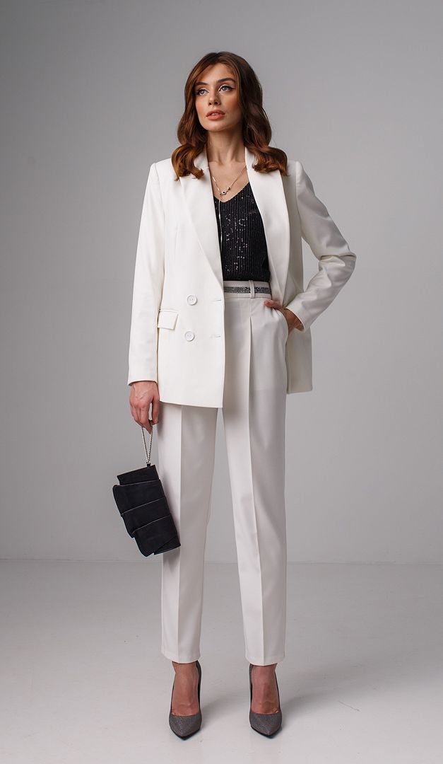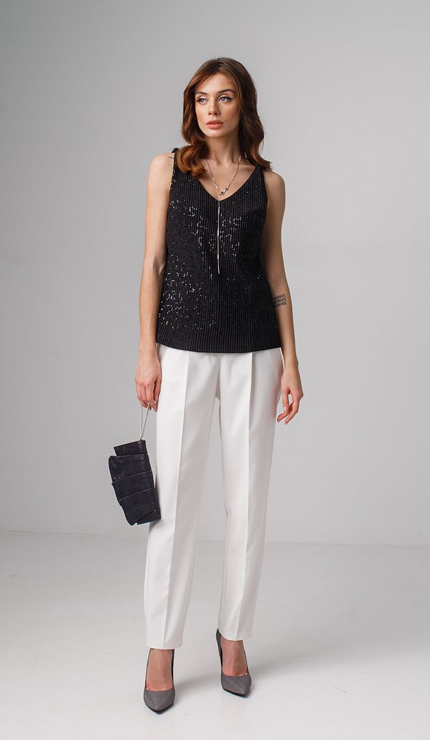 На фото создан образ с брюками с высокой посадкой молочными (арт.1836).