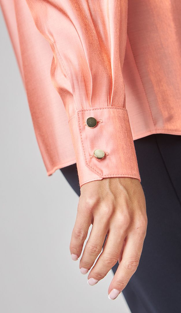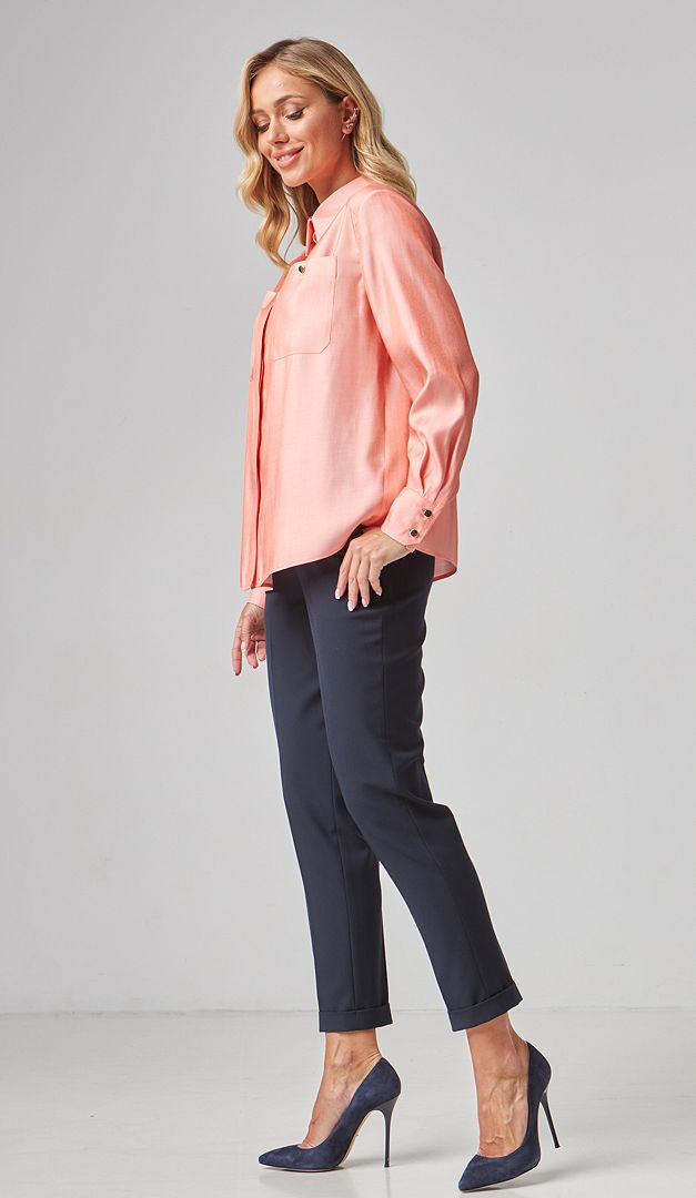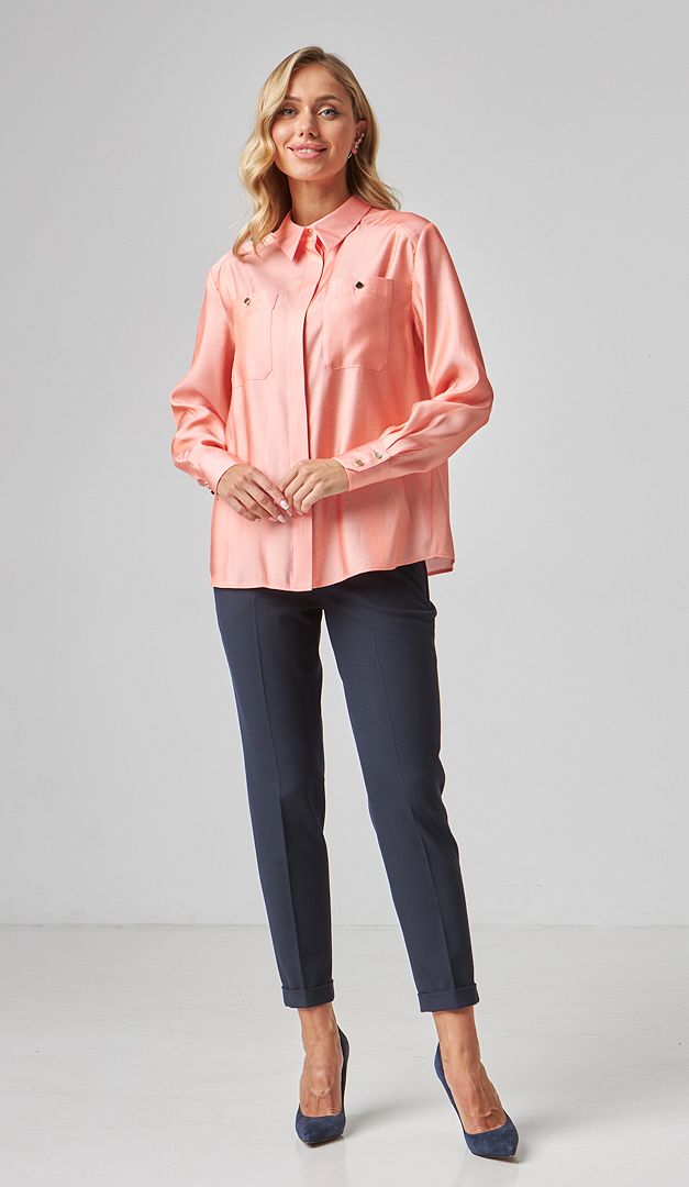 Рубашка женская персикового цвета – стильное сочетание трендового минимализма и эффектности. Такая рубашка лаконично дополнит любой классический образ и станет оригинальным решением для повседневного аутфита с любимыми джинсами. Рубашка женская персикового цвета выполнена с аккуратным откладным воротником, двумя функциональными накладными карманами, длинным прямым рукавом оформленным манжетой с застежкой на две пуговицы и потайной застежкой на пуговицы по переду изделия. А особую элегантность и стиль рубашка женская персикового цвета приобретает за счет монохромной и приятной на ощупь шелковистой ткани, в состав которой входит 78% вискозы.