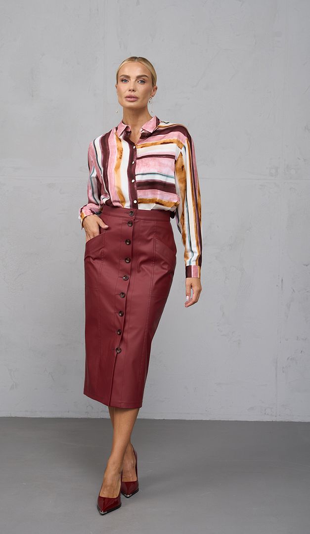На фото создан лук с юбкой из экокожи на пуговицах (арт.1820).