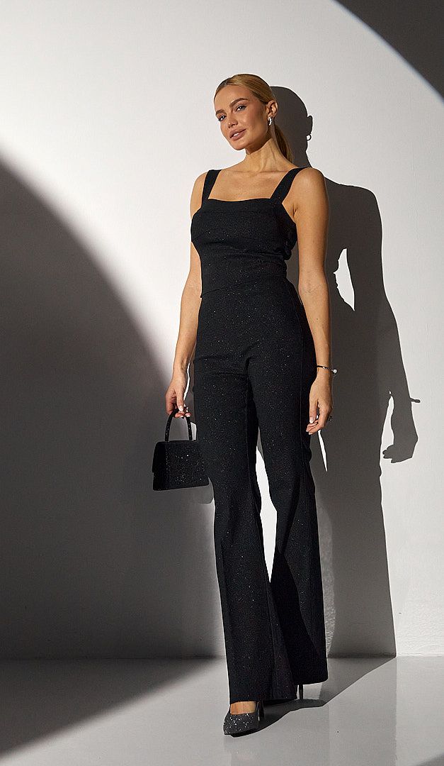 Топ праздничный черный – вещь, которая станет эффектной изюминкой к любому вашему образу. Модель облегающего кроя с широкими фиксированными бретельками и красивым фигурным лифом. Топ праздничный черный выполнен из невероятно эластичной ткани, что обеспечивает комфорт, а особую роскошь изделия придает нежный мерцающий блеск. Модель застегивается на потайную молнию, расположенную в заднем центральном шве. Топ праздничный черный дополнен натуральной подкладкой.