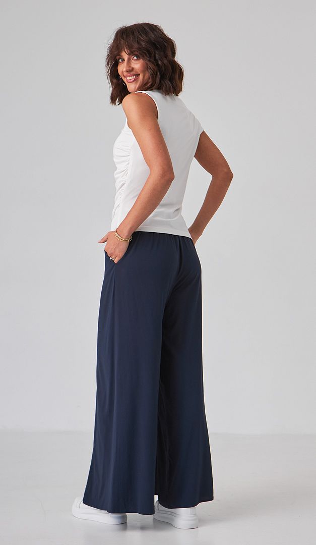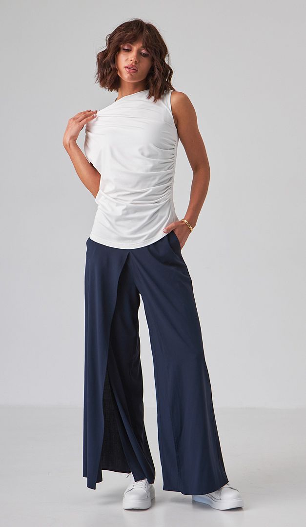 На фото создан лук с широкими брюками синего цвета (арт.1698).