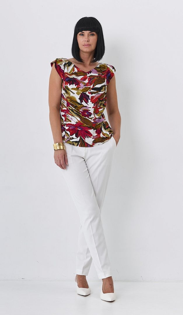 Яркий и выразительный топ в цветочный принт, безусловно, станет одним из любимых элементов Вашего базового гардероба. Выполнен из 100% вискозы, что подарит чувство полного комфорта. Топ в цветочный принт имеет прилегающий крой и неглубокий V-образный вырез горловины. Линия плеч слегка прикрыта оригинальными минималистическими «крылышками», благодаря которым изделие выглядит очень привлекательно. Топ в цветочный принт с легкостью дополнит любой ваш образ, добавив ему легкости и эффектности.