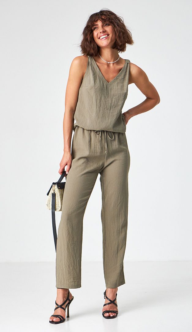Топ женский хаки станет универсальным дополнением как для офисных, так и для повседневных образов. Модель прямого свободного кроя с неглубоким V-образным вырезом горловины. Топ женский хаки благодаря своему лаконичному минималистичному дизайну и нейтральному цвету, будет удачно комбинироваться практически с любым низом и будет стильно смотреться с базовыми женскими жакетами, рубашками или кардиганами.