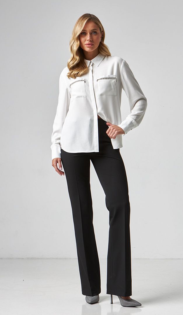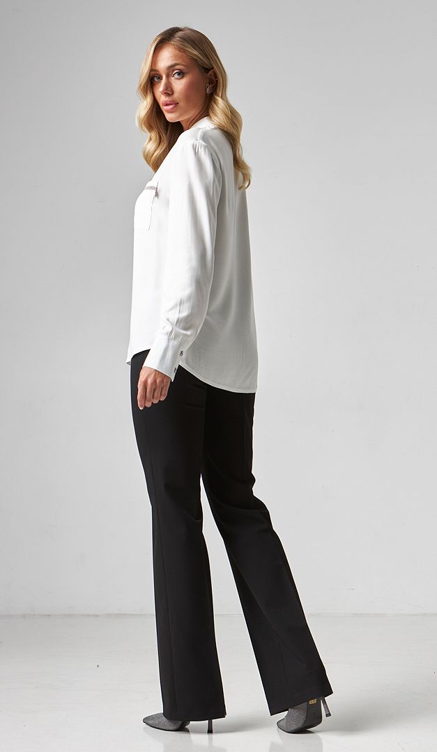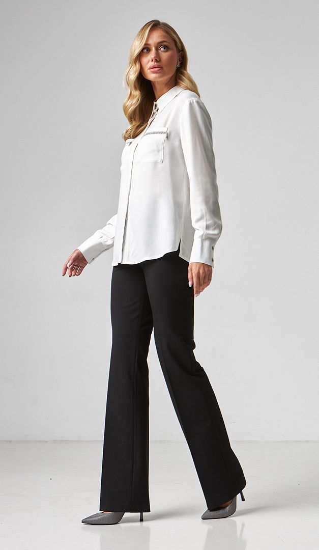 На фото создан лук с брюками и белой женской рубашкой с карманами (арт.1719).