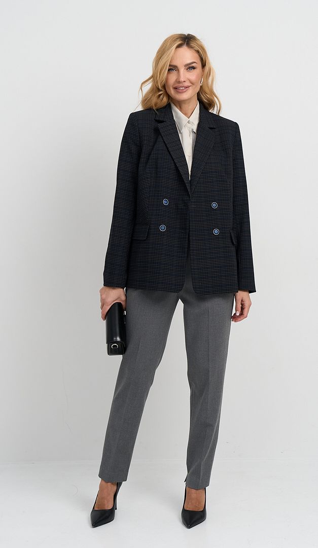 На фото создан образ с рубашкой базовой серой (арт.2731) и жакетом в клетку сине-серым (арт.2895).
