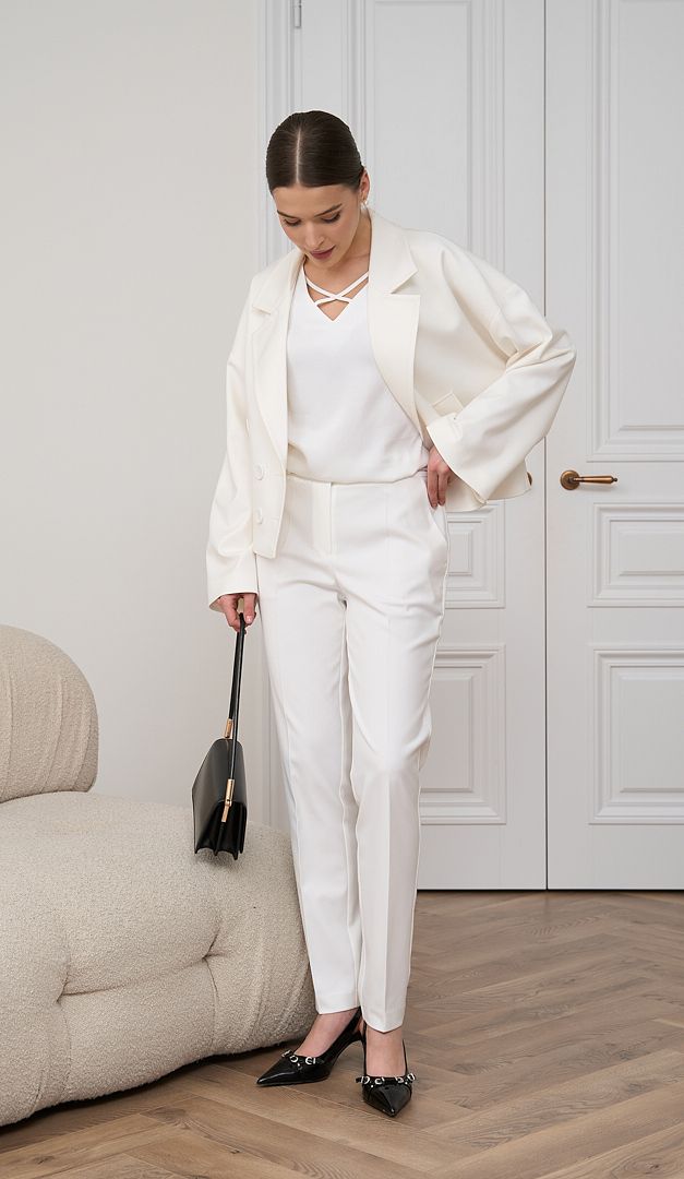 Для изысканного монохромного образа рекомендуем комбинировать брюки с прямым жакетом молочным (арт.2868) и топом с переплетением молочным (арт.1819).