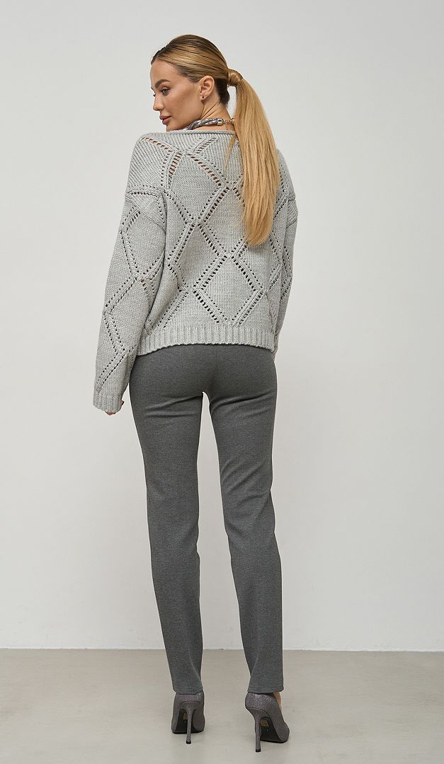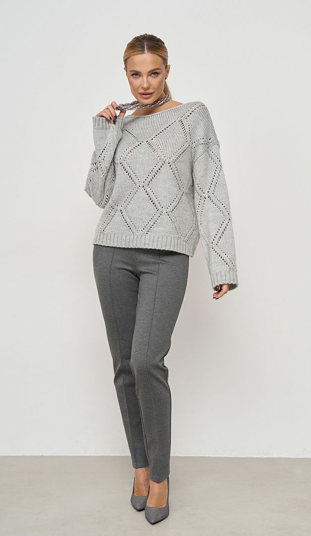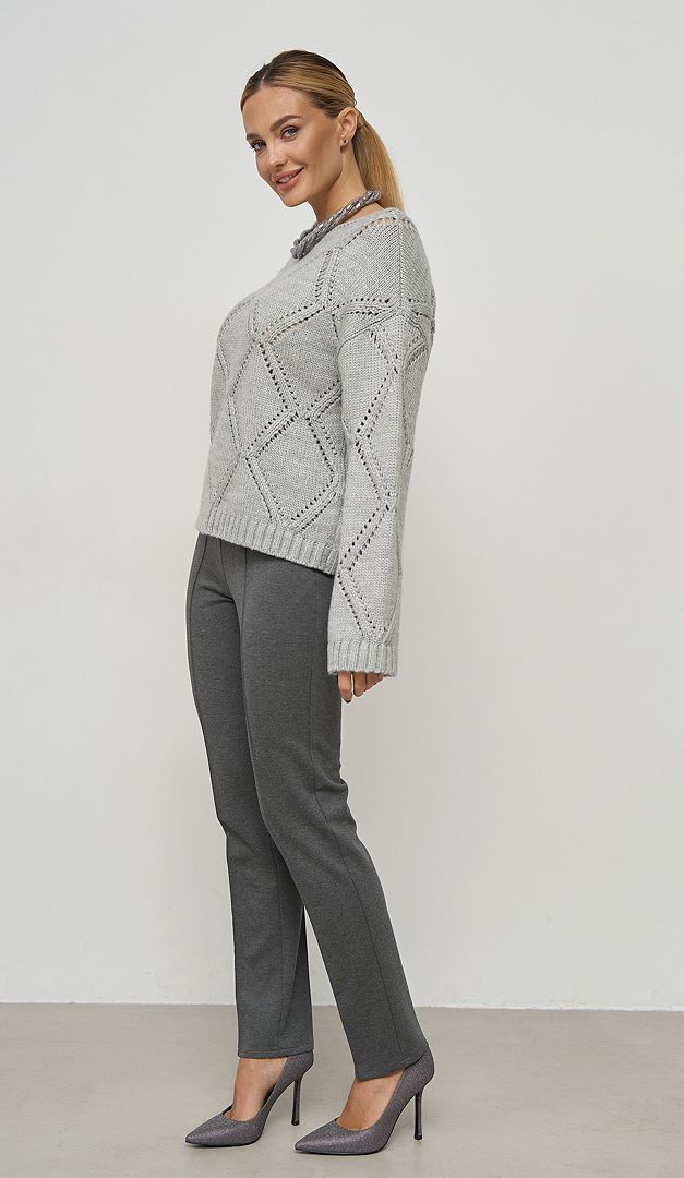 На фото создан образ с джемпером трикотажным ажурным серым (арт.2511).