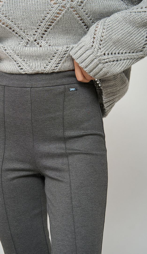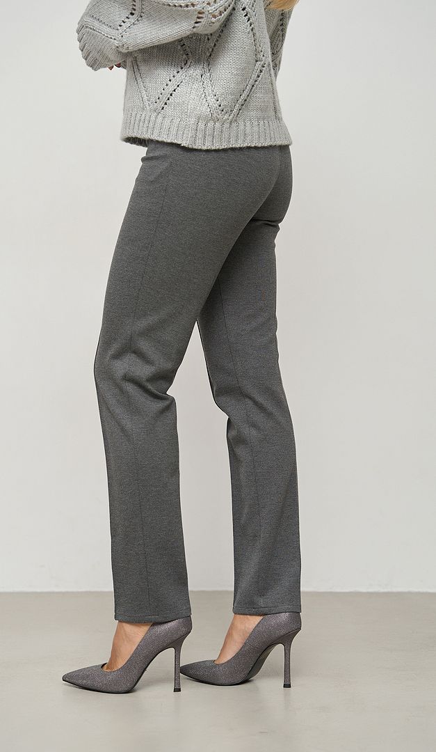 Для максимального комфорта в прохладный сезон выбирайте штаны женские зауженные серые, выполненные из плотного трикотажа. Модель имеет удобную среднюю посадку на эластичной резинке (по спинке) без дополнительных застежек. Штаны женские зауженные серые полусвободного кроя, с застроченными «стрелками» по центру переда, идеально держащими форму и визуально придающими силуэту стройности. Модель без подкладки и карманов.