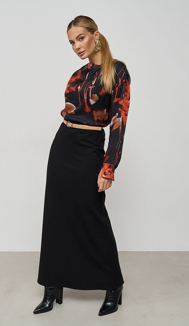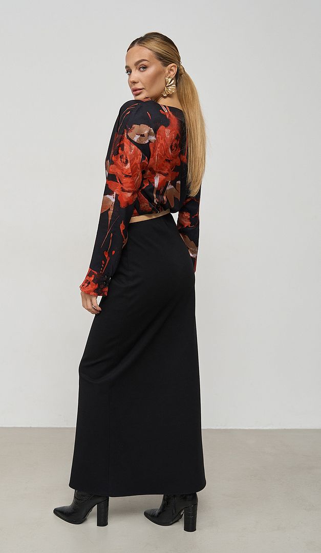 Юбка макси теплая черная – универсальное решение для уютных женственных образов. Модель полусвободного, слегка расширенного к низу кроя. Верх юбки макси теплой черной оформлен широкой эластичной резинкой, что придает ей практичность. Благодаря базовому цвету изделие будет удачно комбинироваться с любым верхом, а плотная ткань с утеплением подарит ощущение полного комфорта в любую погоду. Юбка без застежек и без подкладки.
