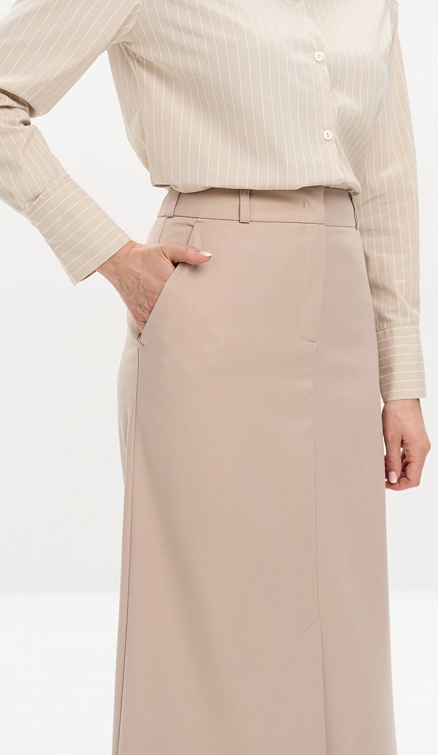 Для создания классических базовых образов удачным выбором станет юбка миди с карманами бежевая. Модель имеет слегка расклешенный книзу крой и трендовую длину миди. Юбка миди с карманами бежевая выполнена со средней посадкой по фигуре, верх оформлен поясом с застежкой на молнию, потайную пуговицу и один крючк спереди. Вместительные карманы по бокам придают изделию практичности, а высокий разрез спереди – удобства. Модель с подкладкой.