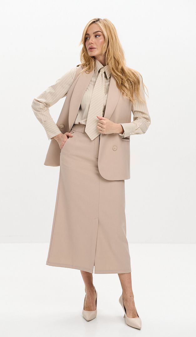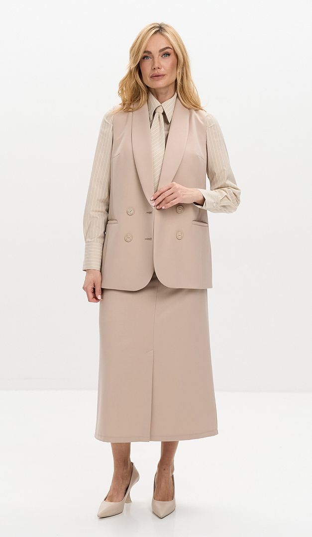 На фото создан образ с рубашкой с галстуком (арт.4124) и жилетом двухбортным бежевым (арт.4120).