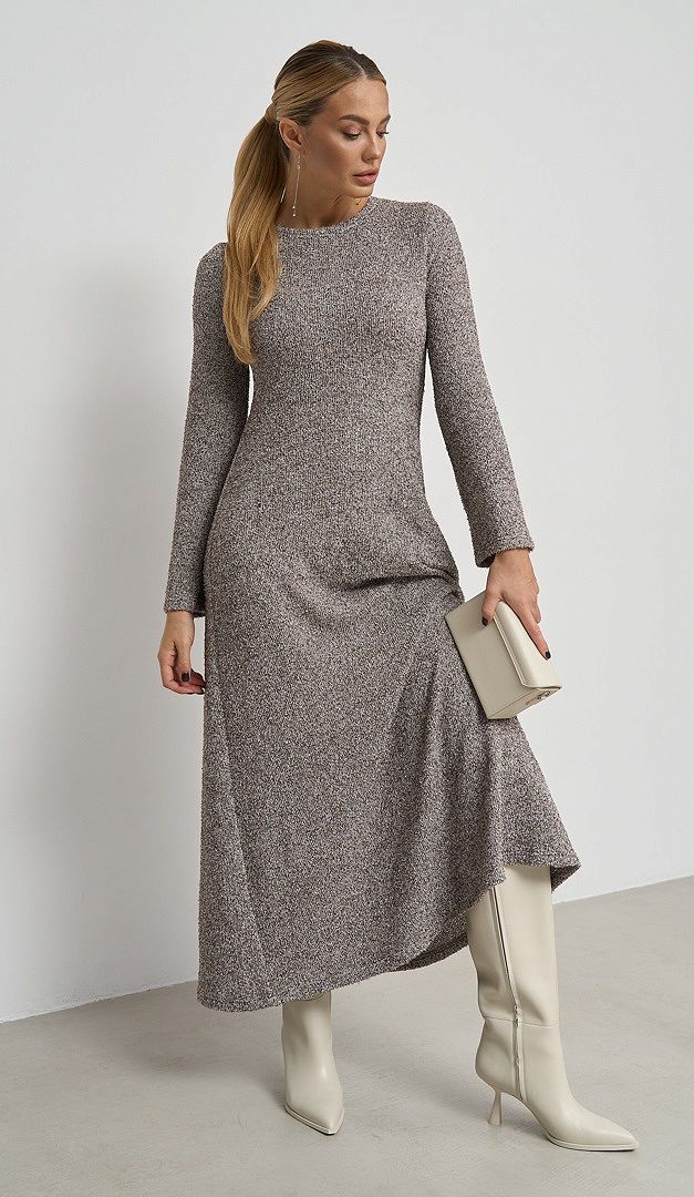 Платье трикотажное шоколадный меланж – настоящая находка для женского гардероба в этом сезоне! Модель полуприлегающего кроя, с длинным слегка расширенным вниз рукавом и аккуратной округлой горловиной, которая сзади имеет неглубокий вырез и оригинальную шнуровку-завязку. Платье трикотажное шоколадный меланж выполнено из невероятно мягкой и приятной к телу ткани, которая безусловно подарит тепло и уют своей обладательнице. Без подкладки и дополнительных застежек.