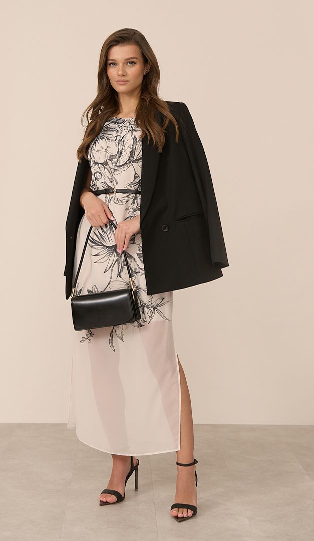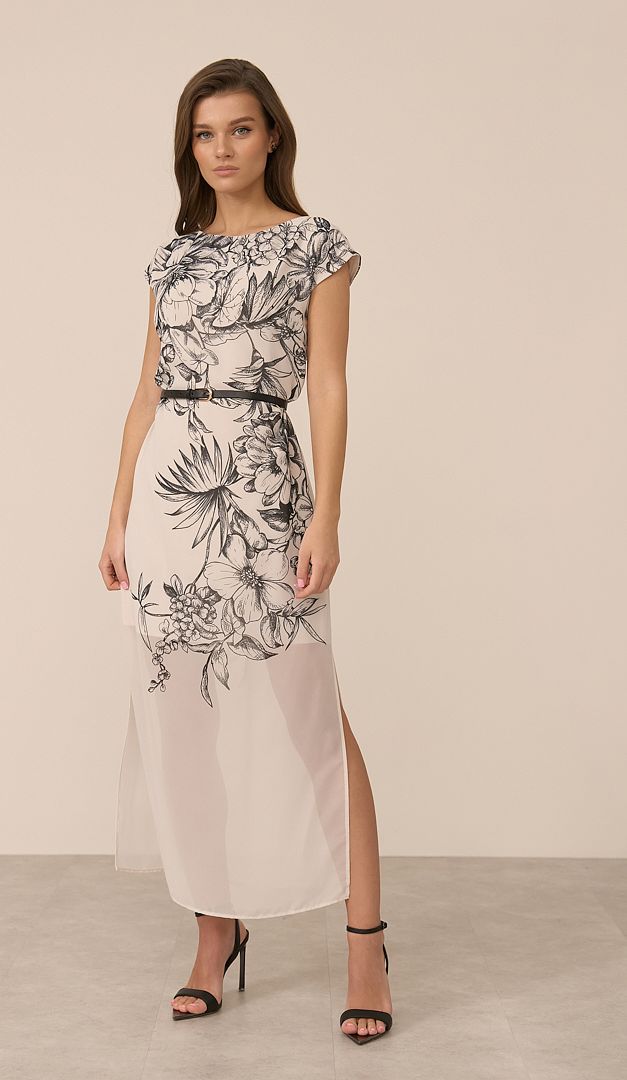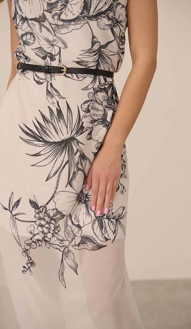 Сарафан максі в квітковий принт додасть ще більше жіночності та легкості вашому образу. Модель прямого вільного крою, з неглибоким округлим вирізом горловини та елегантною довжиною максі. Сарафан максі в квітковий принт виконаний із неймовірно ніжного шифону з контрастним малюнком та має натуральну підкладку — віскоза 100%, що подарує відчуття цілковитого комфорту. По низу бокових швів виріб оформлений високими розпірками. Без застібок.