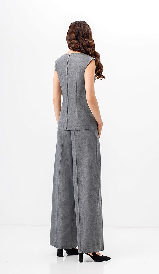 Для создания элегантного образа рекомендуем жилет комбинировать с широкими брюками в полоску серыми (арт.1802).