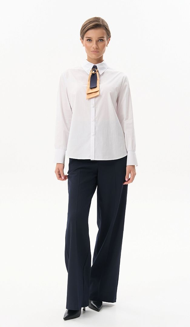 На фото создан лук с блузкой базовой белой (арт.4068) и жакетом с шалевым воротником синим (арт.4057).