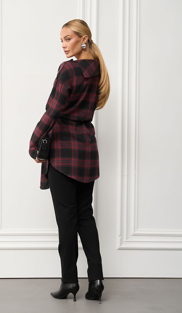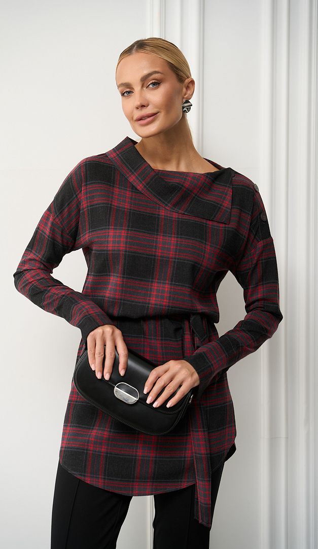 Рекомендуем для тех, кто хочет немного отойти от строгости классического стиля. В блузоне Дора сделан акцент на комфорт и лаконичность. Эта модель имеет прямой полуприлегающий силуэт с дополняющим и подчёркивающим линию талии съёмным поясом. Следует обратить внимание на оригинально оформленный отложной воротник с боковой, по линии плеча, застёжкой на пуговицы, а также - на стильные манжеты. Низ блузона Дора — стильной овальной формы с кокетливыми боковыми распорками.