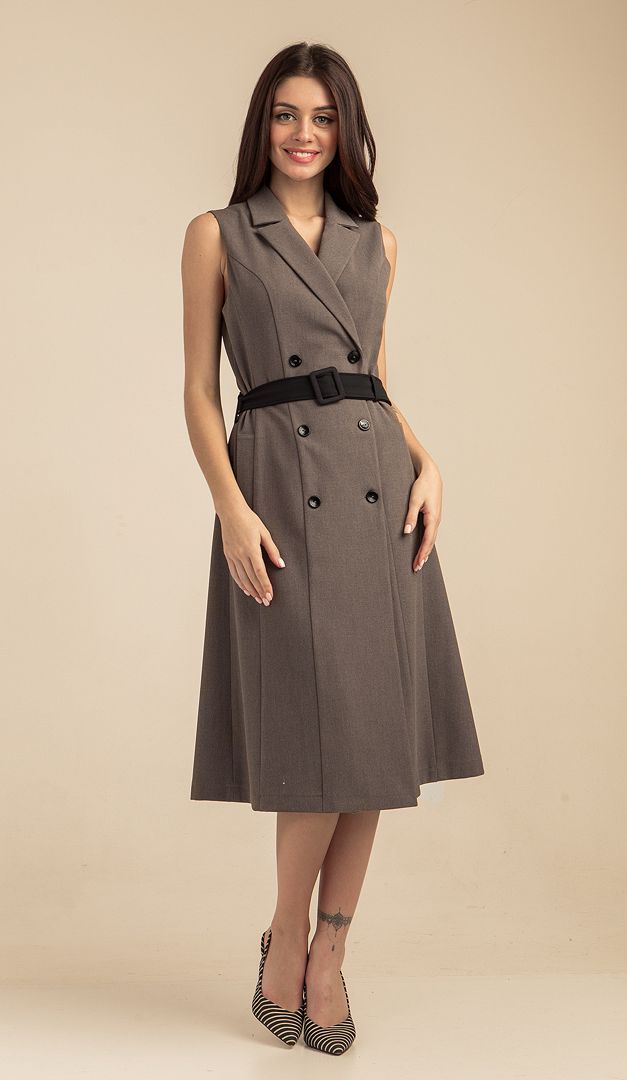 Оригинальное решение для делового образа — это женственный и очень стильный сарафан Лакоста. Модель имеет универсальный, элегантно расклешенный к низу крой, который в сочетании с контрастным съёмным поясом, сформирует пропорциональный привлекательный силуэт в абсолютно любом размере. Представительным сарафан Лакоста делают аккуратные лацканы и 2 ряда контрастных пуговиц, которые ещё к тому же и визуально удлиняют силуэт. Перед сарафана Лакоста дополнен функциональными внутренними карманами. Эта модель порадует Вас своей многофункциональностью, так как ее можно носить с блузами, гольфами, и без них. Сарафан — внутри на подкладке.