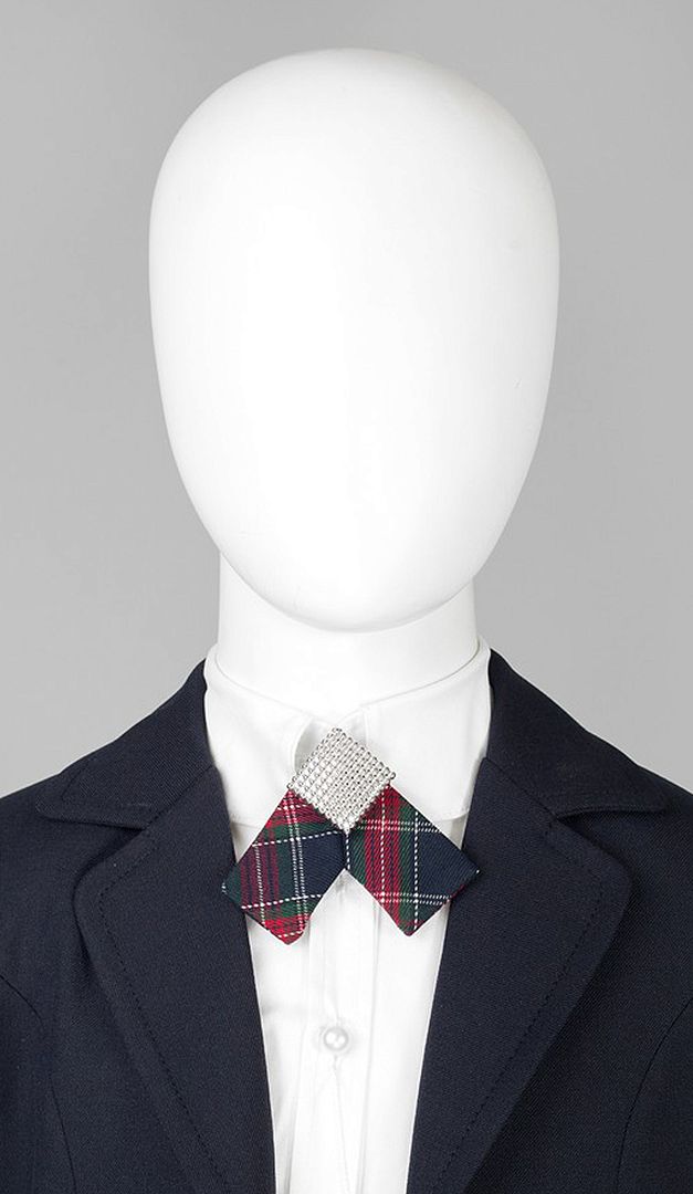 Оригинальный штрих классического образа — это элегантный съёмный бантик. Этот аксессуар по центру дополнен пристёгивающейся эффектной брошью.