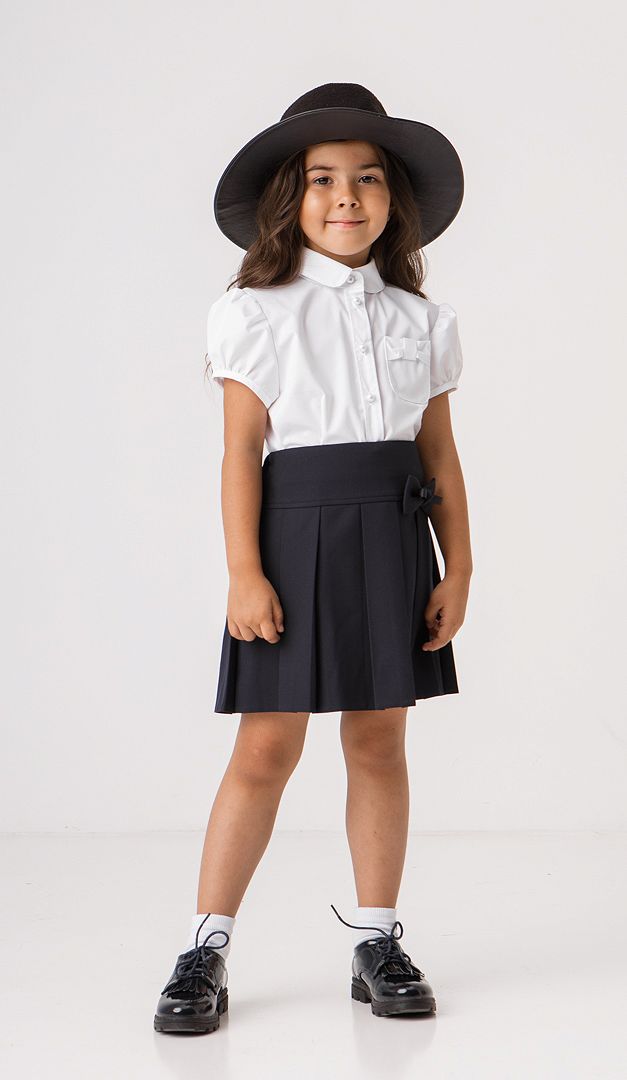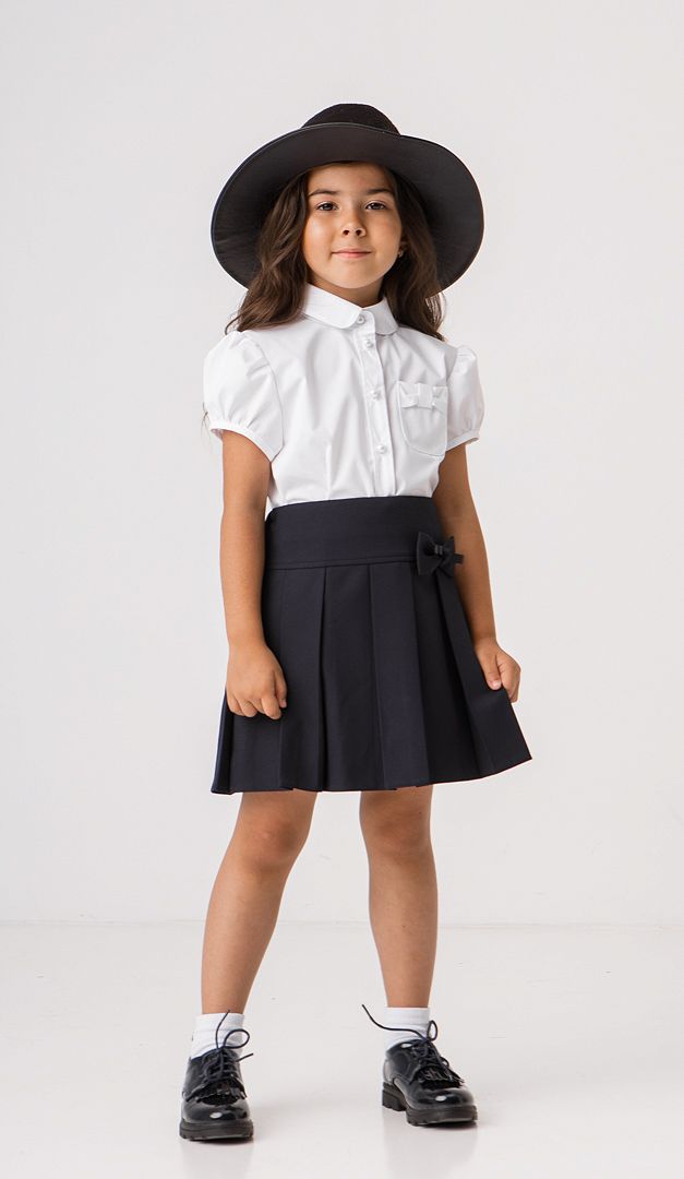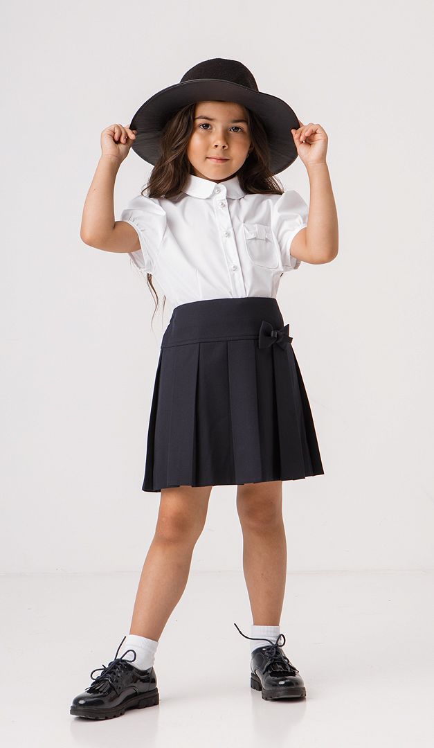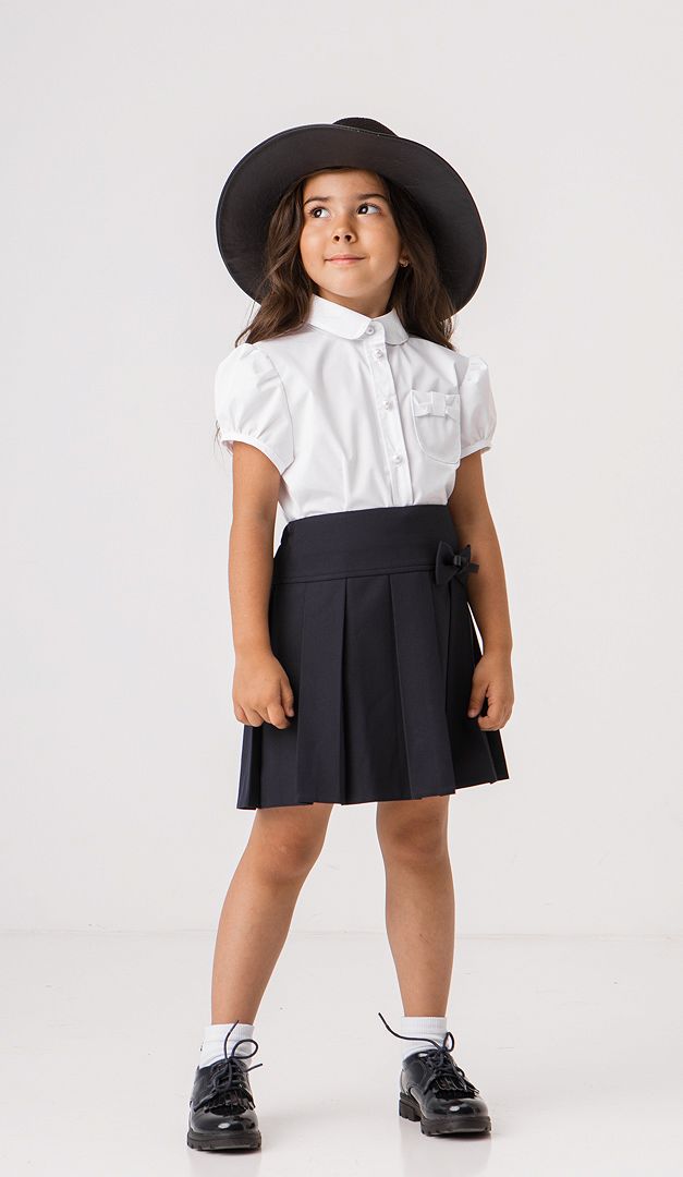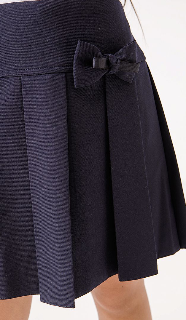 Юбка в складку непременно понравиться всем маленьким модницам! Модель имеет среднюю посадку. Верх оформлен аккуратной кокеткой с встречными складками. Дополнительного очарования юбке придаёт оригинальный милый бантик. Сзади по линии талии изделие фиксируется за счёт внутренней эластичной резинки. Для максимального удобства одевания сзади по центру расположена застёжка-"молния". В зависимости от размера талии ребёнка обхват юбки может регулироваться с помощью расположенной внутри резинки и пуговиц.