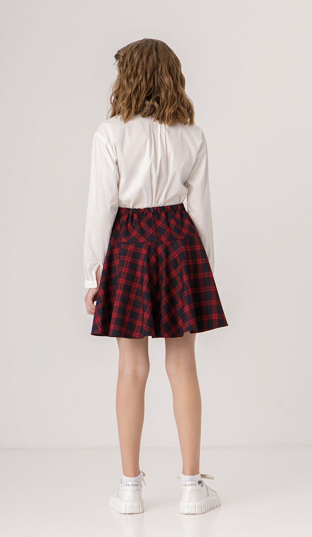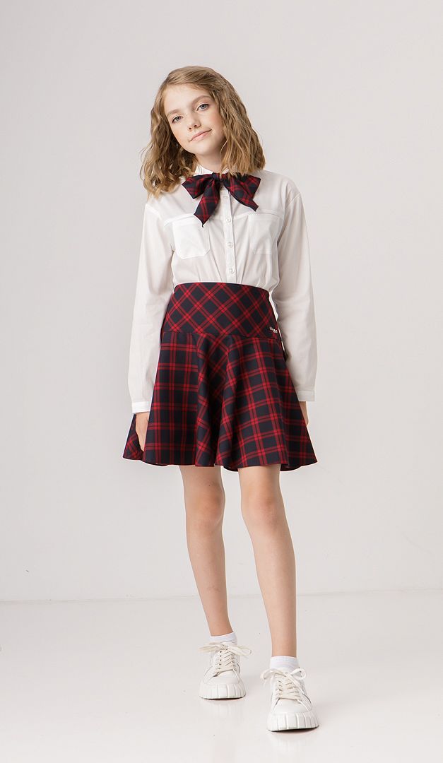 Необычная юбка для девочек-подростков, которая по-новому раскроет школьный образ и сделает его более ярким! Верх изделия оформлен широкой кокеткой, переходящей в кокетливо расклешённый низ. Юбка в среднем шве задней части имеет застёжку на «молнию», а также — специальную резинку на пуговицах для регулирования объёма талии в зависимости от индивидуальных размеров ребёнка. Изделие на подкладке.