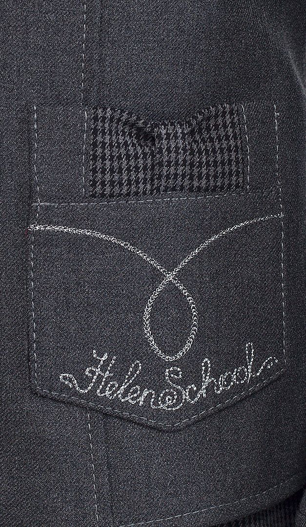 Серый жакет для девочки — это одновременно удобная, практичная и очень красивая идея для школьного дресс-кода. Жакет по полочке оформлен классическим отложным воротником с неглубоким вырезом горловины, переходящим в застёжку на пуговицы. Также передняя часть стильно оформлена фигурными рельефами и накладными функциональными карманами, украшенными миловидными бантиками. Рукав – двухшовный с имитацией манжета и с дополнительным запасом подгиба по низу. Спинка также украшена бантиком по линии талии, вшитым в фигурные рельефы, и средним швом. Изделие на подкладе.