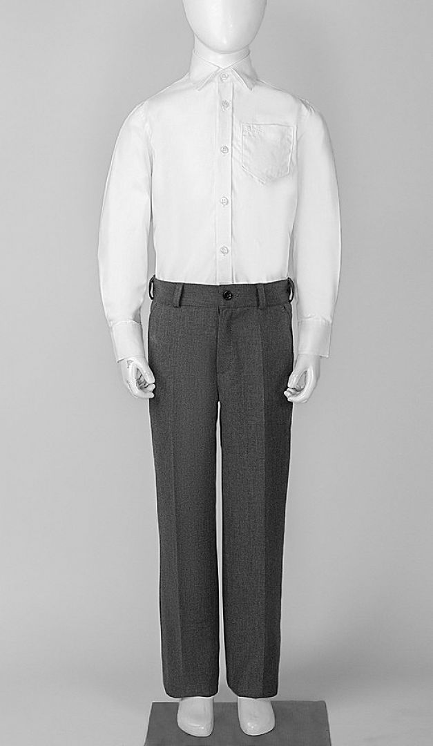 Стильная рубашка, классического прямого кроя - это идеальное дополнение к гардеробу современного школьника. Рубашка выполнена из натуральной качественной ткани, полочка изделия оформлена округлым вырезом горловины с классическим отложным воротником и дополнена накладным функциональным карманом. Модель застегивается на удобную планку-застежку на пуговицах, расположенную по центру передней полочки . Длинные рукава оформлены манжетами на одной пуговичке. Низ рубашки плавной полукруглой формы.
