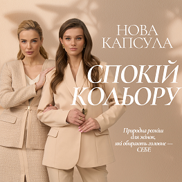 У колекції — речі, що легко стають основою гардеробу: твідовий нюдовий костюм із глибокою фактурою, яка делікатно підкреслює статусність; вершковий костюм з акцентним ґудзиком, що додає образу жіночності й м’якості. А також — лаконічні топи, створені для того, щоб підкреслити витонченість і завершити силует у дусі тихої розкоші.