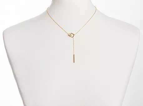 Стильний мінімалізм в вашому арсеналі прикрас! Тонкий ланцюжок класичного плетіння з квадратним кулоном, безумовно, підкреслить елегантність і додасть жіночності образу. Такий аксесуар буде доречним і для повсякденного носіння і до святкового вечірнього вбрання. Оригінальності моделі надає незвичайна підвіска виконана з геометричних елементів.