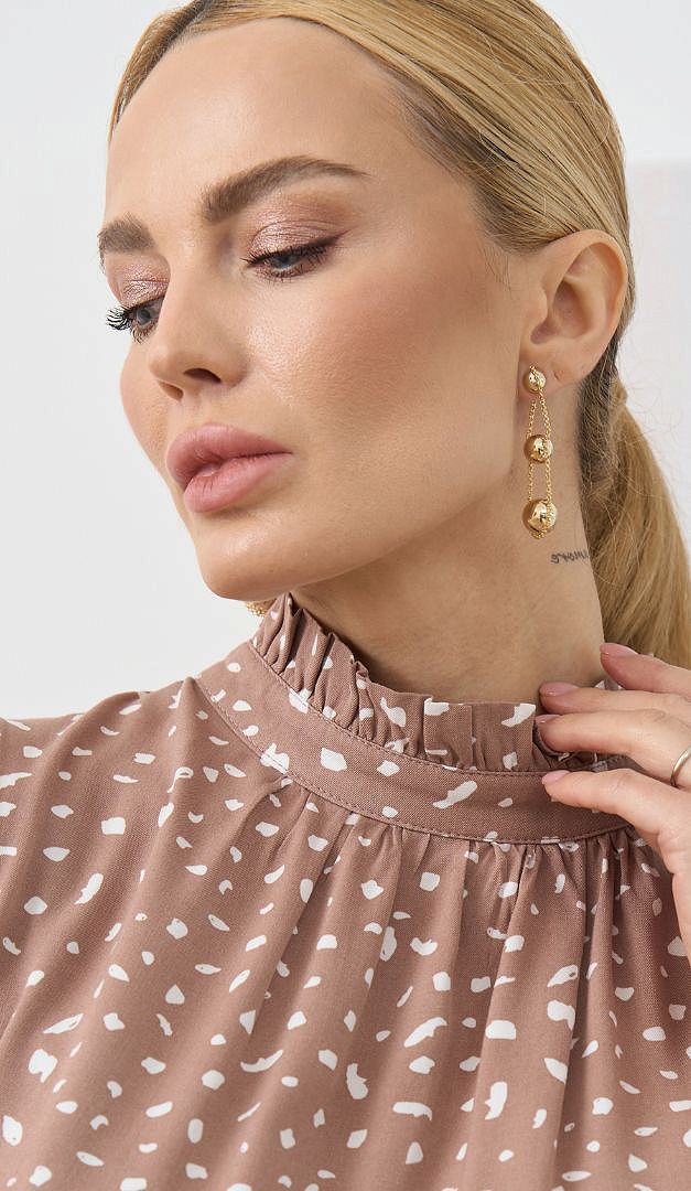 Сережки з золотим ланцюжком — саме та прикраса, яка додасть образу вишуканості. Аксесуар має оригінальний дизайн: об'ємні кулі, що кріпляться за допомогою тонкого ланцюжка. Сережки з золотим ланцюжком застібаються на класичну застібку-цвяшок. Ця модель, безумовно, стане ефектним акцентом у будь-якому жіночому образі.