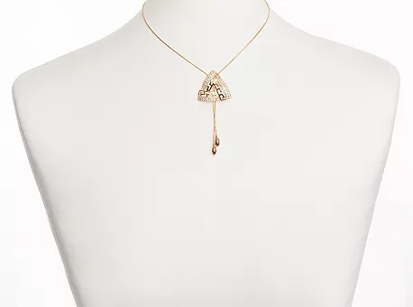 Правильно підібраний аксесуар здатний не тільки підкреслити вишуканість і витонченість смаку своєї власниці, а й зробити вдалий акцент в її вбранні і в образі в цілому. Дана прикраса відрізняється своєю витонченістю і неповторним елегантним стилем. Виріб виконаний з тонкого ланцюжка-змійки з застібкою. Оригінальності аксесуару надає красива брошка- «бігунок», стильно доповнена блискучими декоративними каменями.