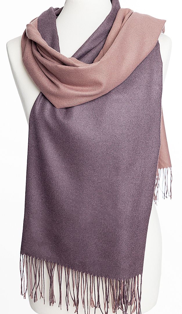 Теплий палантин двосторонній — практичне і стильне доповнення до будь-якого жіночого гардеробу в осінньо-зимовий сезон. Такий аксесуар додає жіночому образу вразливості та витонченості, підкреслює стиль і елегантність силуету. Дана модель відрізняється вдалим поєднанням двох монохромних кольорів тканини по обидві сторони. Низ аксесуара доповнений красивою довгою бахромою. Такий палантин, безумовно, стане вдалим акцентом у Вашому вбранні.