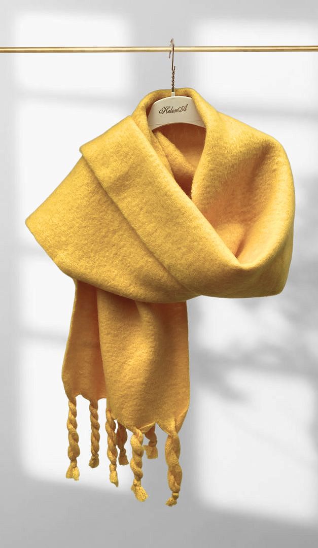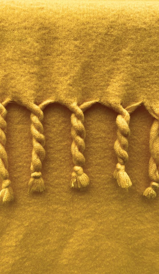 Додайте до свого дня яскравості! Шарф з косами сонячний додасть стильного акценту до будь-якого жіночого образу. Модель виконана в монохромному барвистому кольорі, краї оформлені оригінальною довгою бахромою, що має форму “коси”, а сама тканина має надзвичайно м'яку, ніжну текстуру. Шарф з косами сонячний закохує в себе з першого дотику і подарує відчуття цілковитого комфорту та тепла за будь-якої погоди.