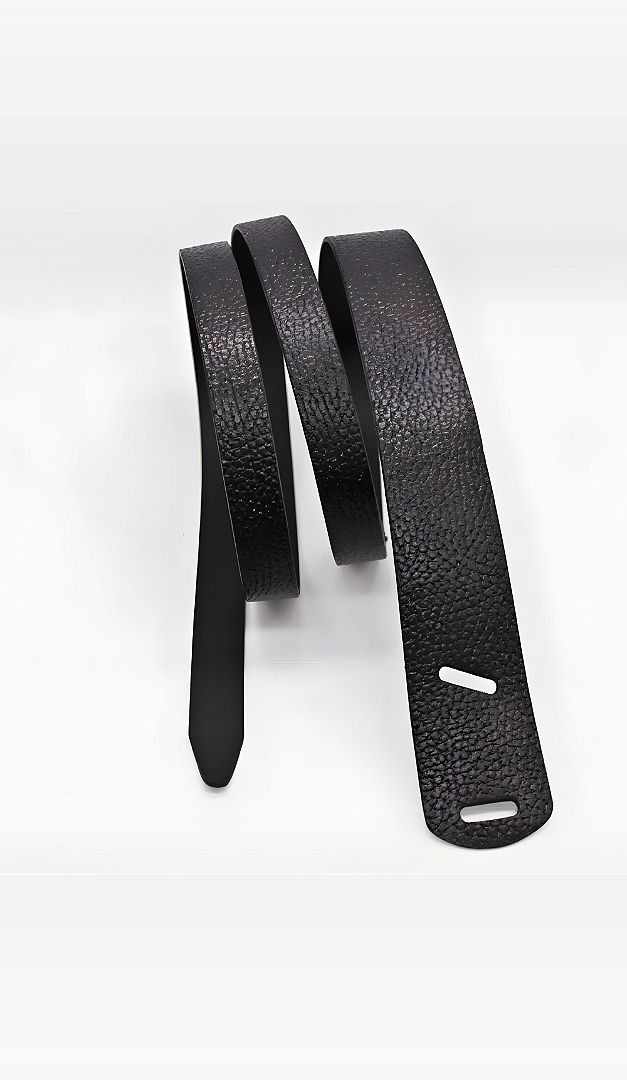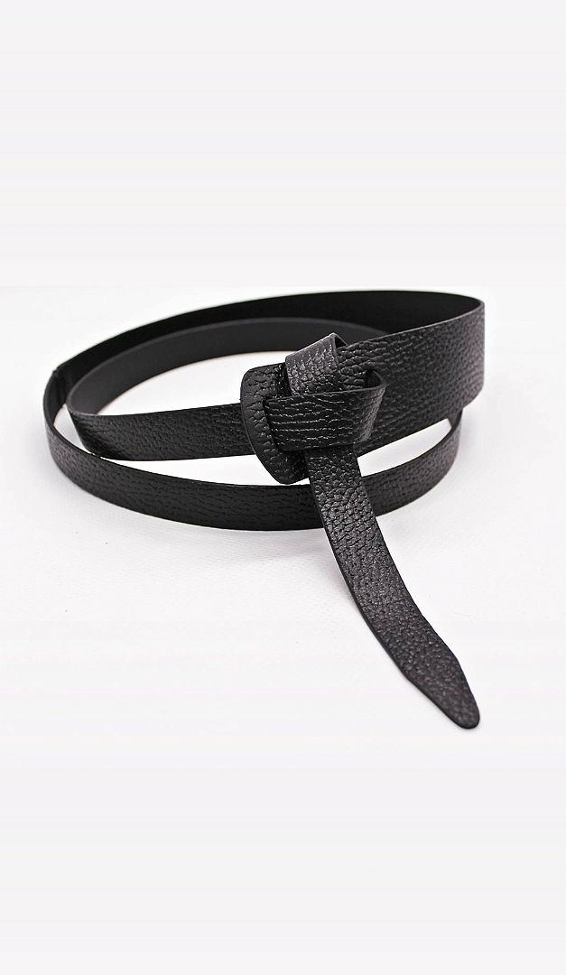 Ремінь фігурний петля чорний — оригінальне доповнення до трендовий жіночих образів. Виріб виконаний із натуральної шкіри з матовим рельєфним покриттям. Ремінь фігурний петля чорний фіксується на талії за допомогою двох прорізних отворів, крізь які виріб затягується на необхідний розмір, а вузький край протягується через сформовану таким чином петлю. Аксесуар стильно виглядатиме в аутфітах з об'ємними джемперами та сукнями.