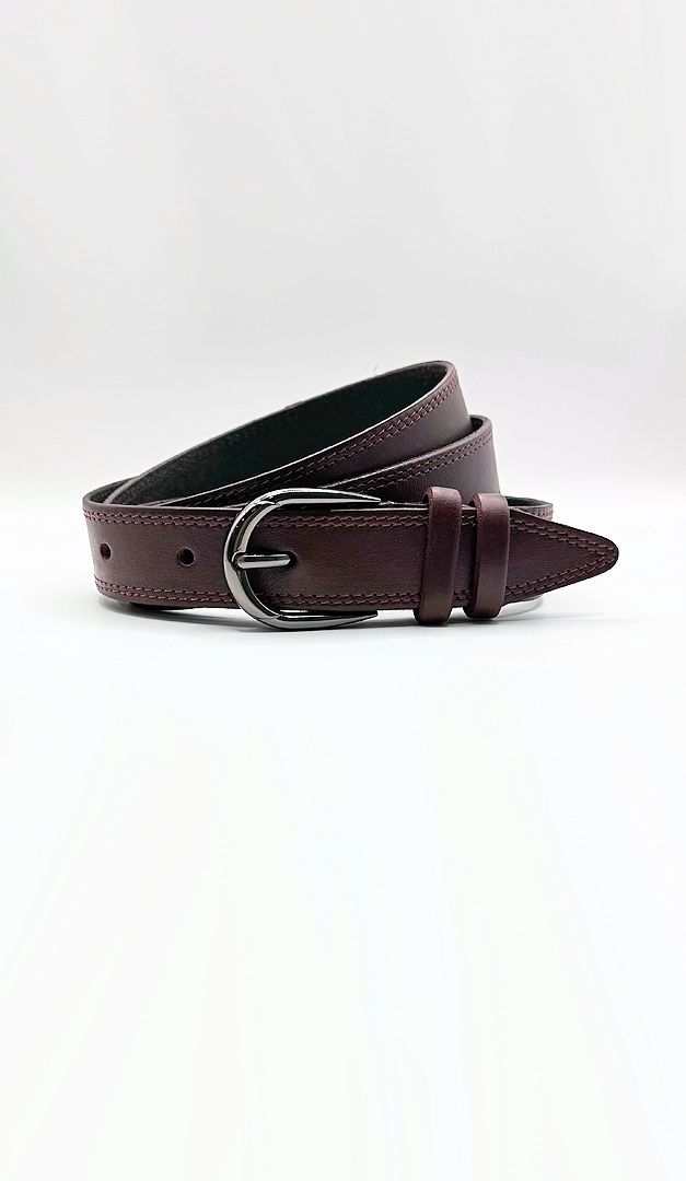Ремінь шкіряний бордовий прошитий — універсальний жіночий аксесуар в мінімалістичному елегантним дизайні. Такий виріб стане незамінною річчю в будь-якому гардеробі, адже мода на речі в вишуканому класичному стилі ніколи не проходить. Ремінь шкіряний бордовий прошитий має класичну металева пряжку, трендовий монохромний колір і виконаний із якісної натуральної шкіри. Такий ремінь — справжня знахідка для впевнених і незалежних особистостей.