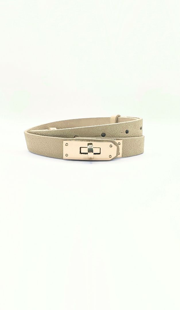 Витончений ремінь з замком пряжкою із натуральної шкіри — ідеальний аксесуар для стильного образу. Модель доповнена оригінальною золотою пряжкою, що додає вишуканості. Завдяки класичному дизайну такий виріб пасуватиме як до суконь, так і до брюк чи спідниць. Легка регуляція довжини дозволяє комфортно фіксувати ремінь на талії. Надійна фурнітура та якісне виконання гарантують довговічність.