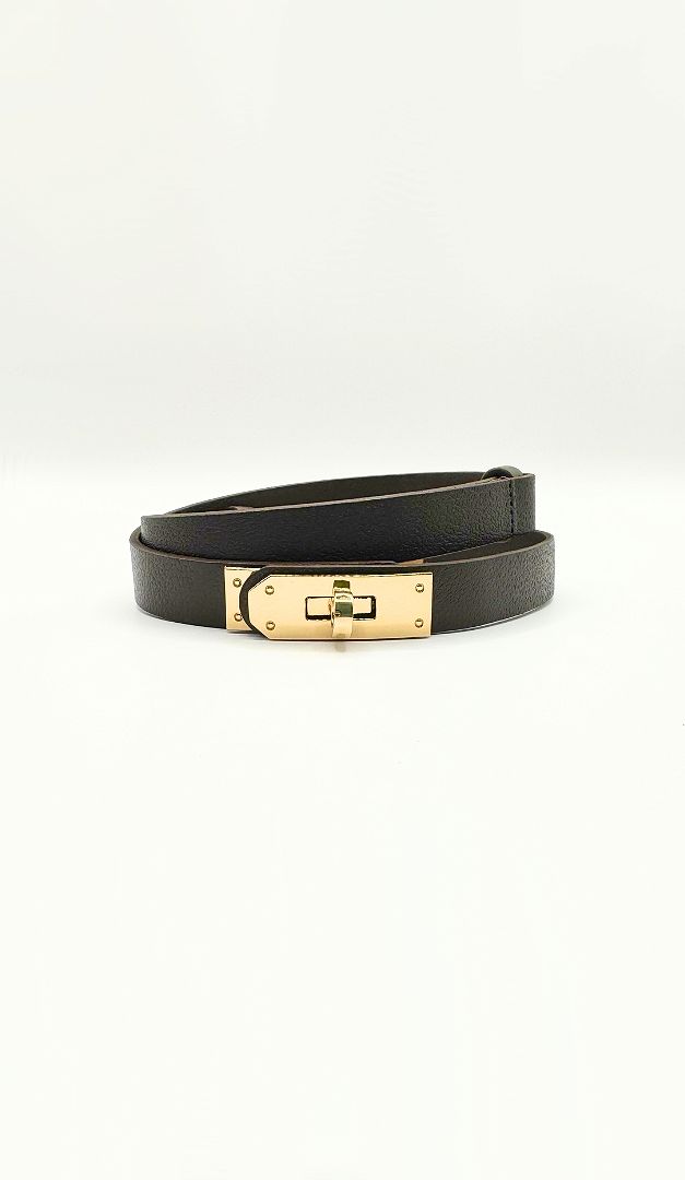 Витончений ремінь з замком пряжкою із натуральної шкіри — ідеальний аксесуар для стильного образу. Модель доповнена оригінальною золотою пряжкою, що додає вишуканості. Завдяки класичному дизайну такий виріб пасуватиме як до суконь, так і до брюк чи спідниць. Легка регуляція довжини дозволяє комфортно фіксувати ремінь на талії. Надійна фурнітура та якісне виконання гарантують довговічність.