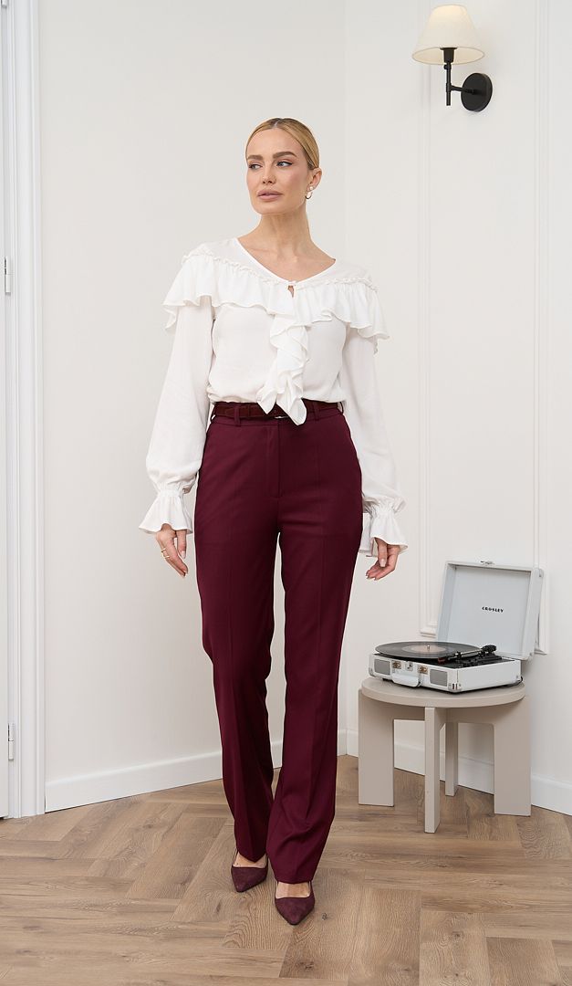 На фото створений образ з жакетом кольору бордо (арт.2843) та штанами кольору бордо (арт.2844).