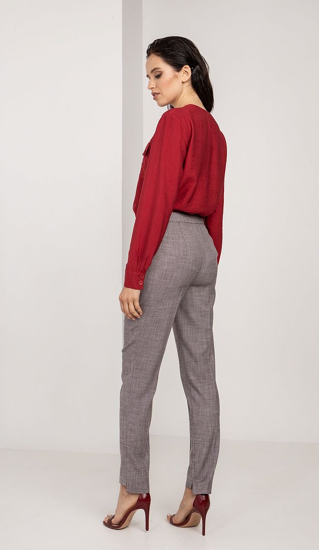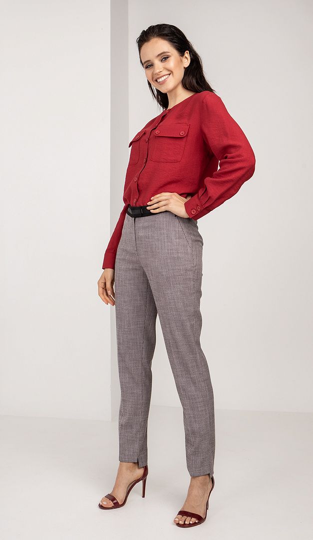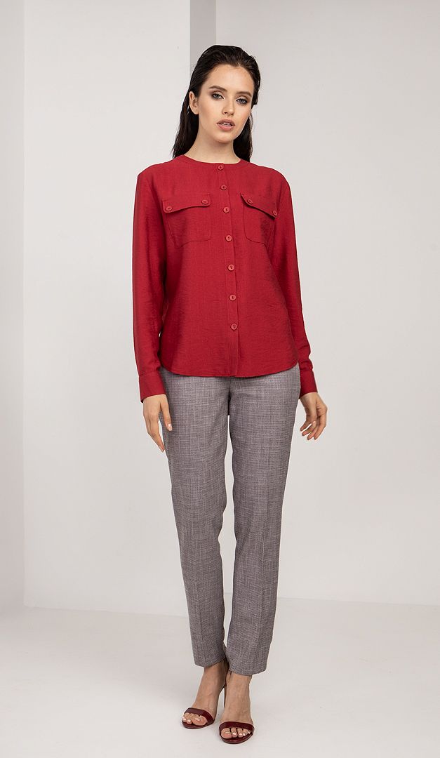 Стильна блуза сорочкового крою зробить будь-який Ваш образ багатим і дуже ефектним, не дивлячись на свій лаконічний дизайн. Блуза Мальва виконана з приємної на дотик віскозної тканини. Вільний прямий крій ідеальний для всіх типів фігури. Закритий виріз горловини виконаний без звичного коміра. Ця базова модель стильно доповнена накладними кишенями і гармонійно підібраними в тон ґудзиками.