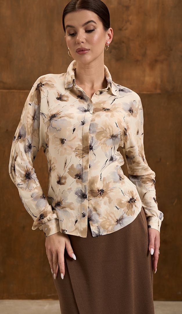 Стильна та елегантна блузка в квітковий принт вершкова додасть до будь-якого класичного образу жіночності та романтичного настрою. Модель прямого крою, з відкладним коміром-стійкою, довгими цільно кроєними рукавами з манжетами і потайною планкою-застібкою на ґудзиках. Блузка в квітковий принт вершкова завдяки своєму лаконічному виконанню буде вдалим доповненням як для офісних образів, так і для створення святкових луків.