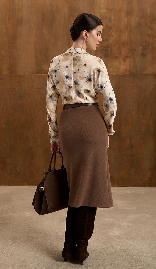 На фото створений образ з спідницею кавовою (арт.4020).