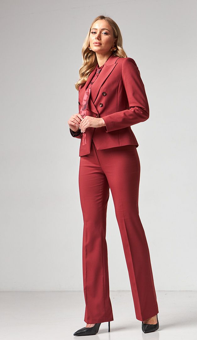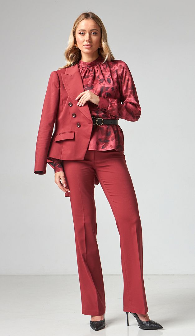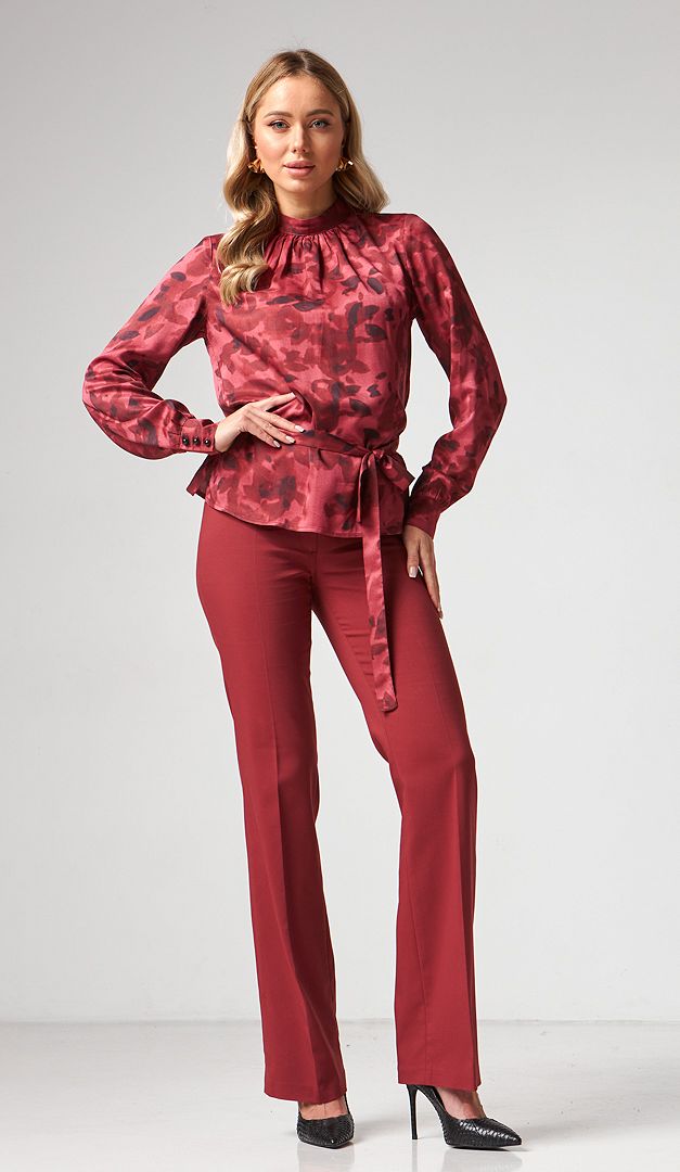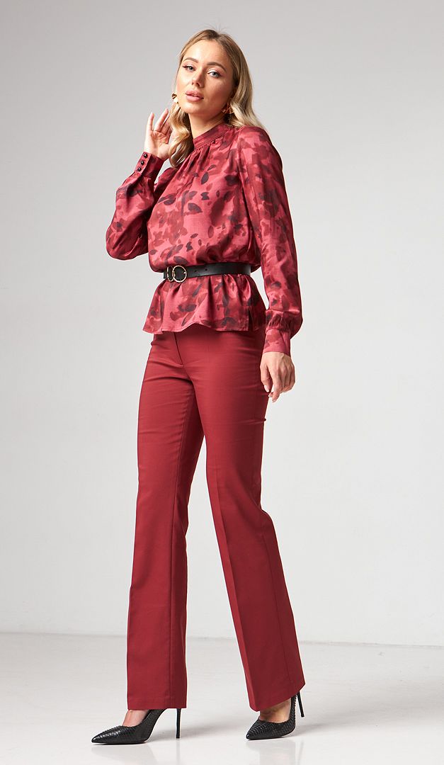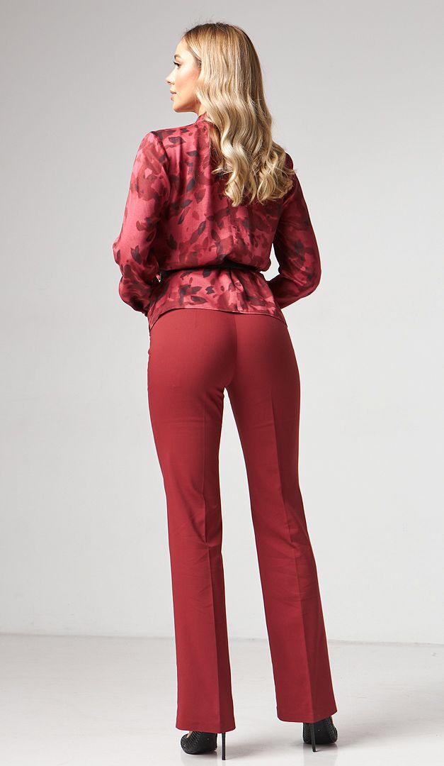 На фото створений лук з блузкою і брюками кльош жіночими теракотовими (арт.2151).