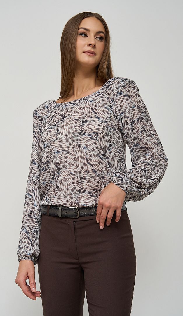 Блузка жіноча з рукавом реглан додасть образу ніжності та жіночності. Модель вільного прямого крою, з неглибоким округлим вирізом горловини і широким довгим рукавом, який по знизу оформлений еластичною резинкою, завдяки чому виглядає неймовірно стильно та елегантно. Блузка жіноча з рукавом реглан має тонкі плечові накладки і застібку на один ґудзик ззаду. Тканина із 100% віскози подарує відчуття цілковитого комфорту, а невимушений принт буде вдало комбінуватися з будь-якими речами. Без підкладки.