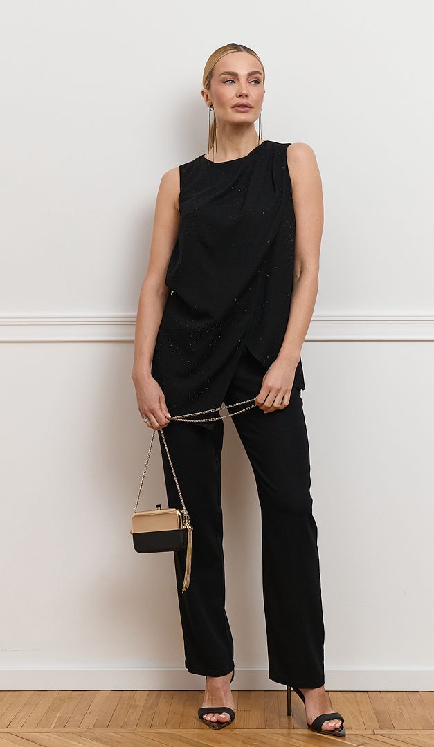 Для створення монохромного образу рекомендуємо блузон комбінувати з штанами льон чорними (арт.2870).