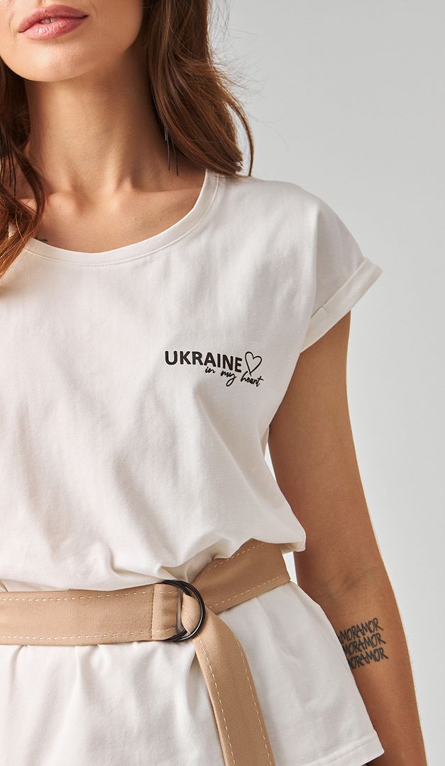 Футболка жіноча патріотична молочна — це та річ, яка з легкістю знайде своє особливе місце у вашому гардеробі. Завдяки своїй універсальності та лаконічності модель вдало доповнить, як офісні луки, так і образи в стилі casual. Футболка жіноча патріотична молочна має прямий вільний крій, неглибокий округлий виріз горловини і невеликий цільно кроєний рукав оформлений по краю відворотом. А стильний патріотичний принт додає виробу актуальності.