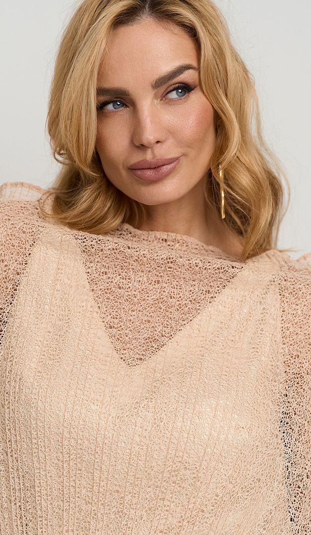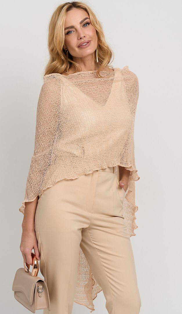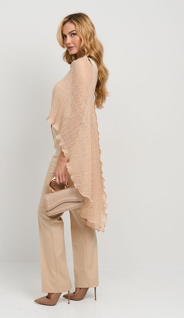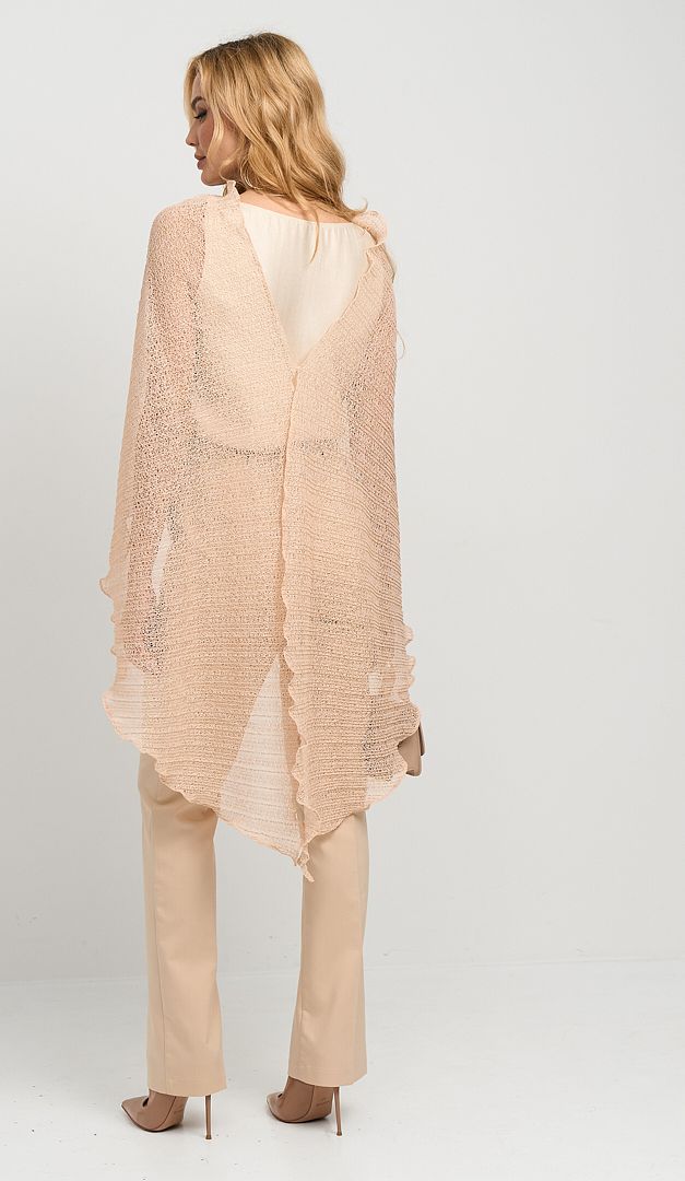 Топ святковий вершковий — неймовірно стильне і ефектне доповнення до вашого гардеробу. Модель вільного крою, з округлою горловиною і прошитою лінією ззаду, яка скріплює полотно утворюючи неймовірно красиву спинку-шлейф. Завдяки простому і водночас витонченому дизайну топ святковий вершковий легко і гармонійно поєднується у будь-яких образах для особливих подій.
